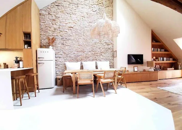 Bouzaise Parkı'dan sadece 1 km mesafedeki Le Toit Des Hospices : Hypercentre/Vue/Clim Daire Beaune, şehir manzaralı odalar sunmaktadır. Bu daire 2 yatak odası, çalışma masası, kahve/çay makinesi, televizyon ile elektrikli su ısıtıcısı, buzdolabı, mutfak gereçleri içeren tam donanımlı mutfak ile donatılmıştır.